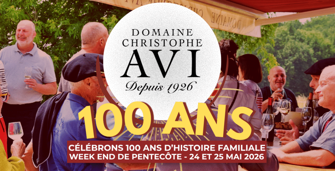 Les 100 ans du Domaine Christophe Avi Un week-end de Pentecôte entre fête et partage À l’occasion de ses 100 ans, le Domaine Christophe Avi vous ouvre ses portes pour un week-end de Pentecôte placé sous le signe de la